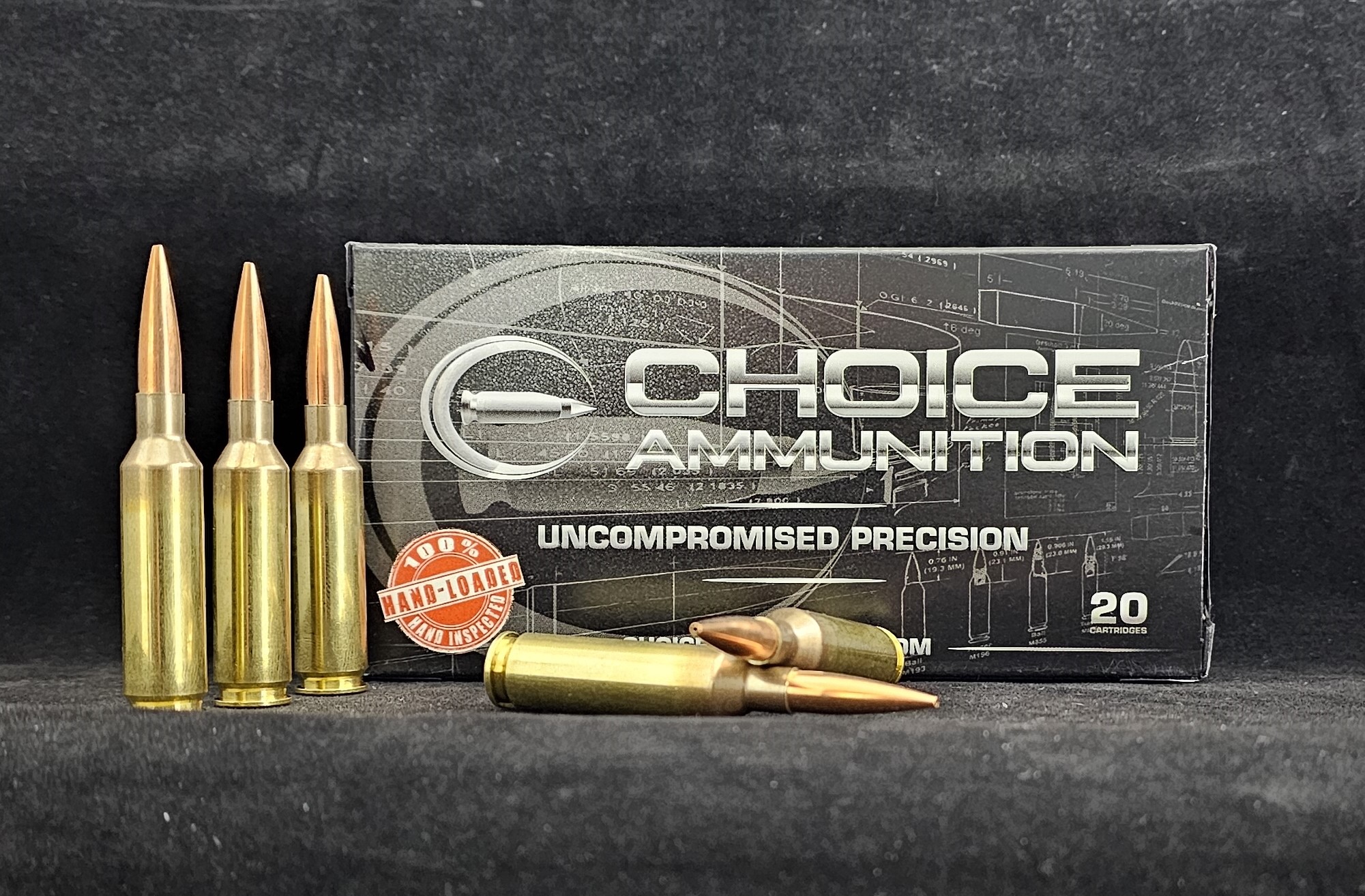 Choice Ammunition has taken our 100% hand-loading techniques and produce an extremely accurate, highly dependable round for the 243 WSSM in this load. Our loading tolerances are only matched by passionate hand-loaders in their own loading rooms. Consistent seating depths, powder charges and proprietary formulas of Choice Ammunition, make this 87 grain Soft Point round the best you can buy on the commercial market today.