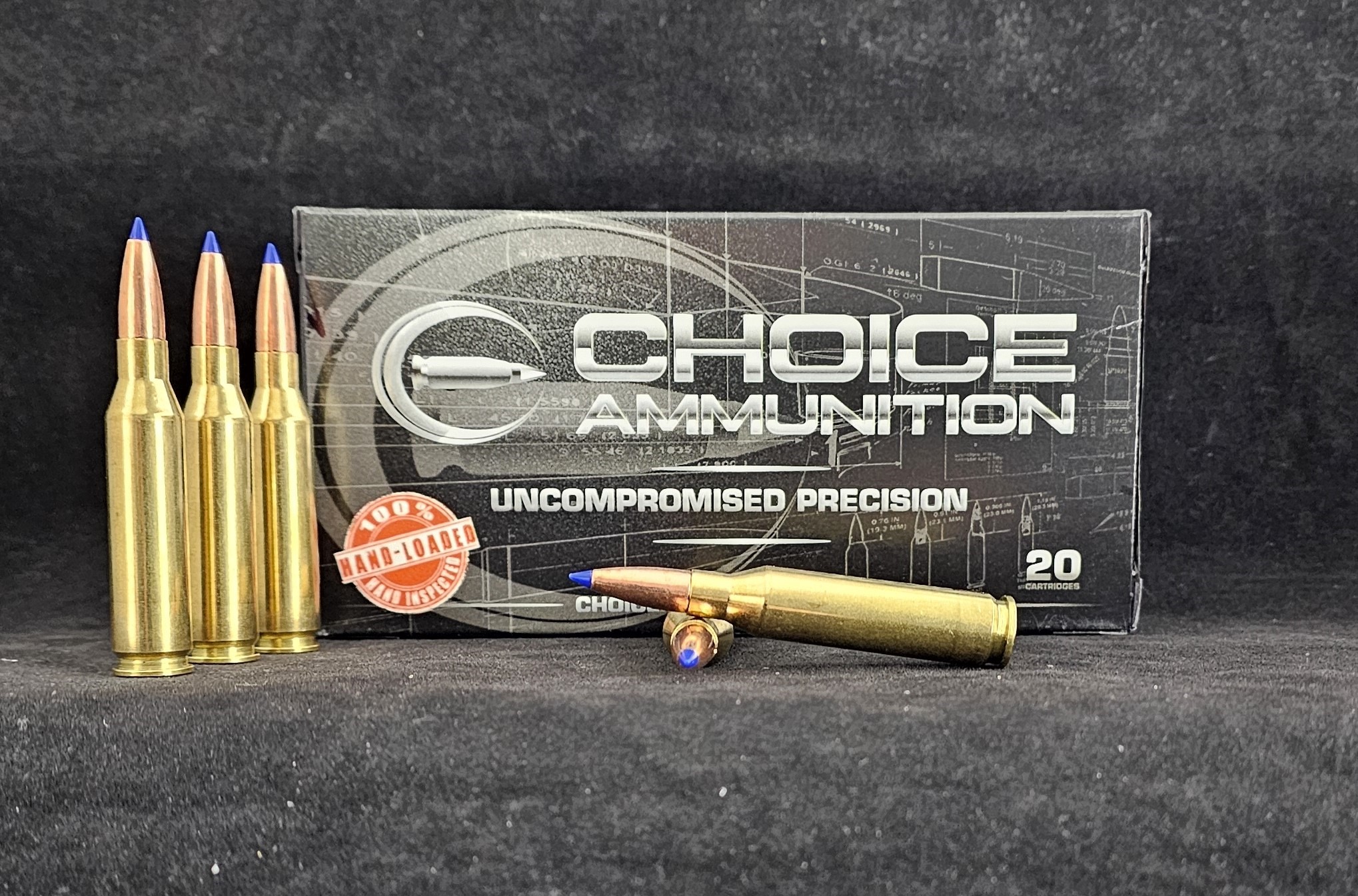 Choice Ammunition, and our 100% Hand-Loading techniques- produce a round of ammunition for the .280 Ackley Improved that is demanded in big game hunting. Accuracy, consistency and dependability are crucial at that final moments of your hunt. Choice Ammunition takes this responsibility seriously by meticulously weighing each powder charge with our proprietary formulas and temperature insensitive powders, seating the bullet at the exact length for optimal performance and test firing each and every lot of ammunition at an average of 500% over industry average. We have no high speed production machines- only passionate and dedicated load technicians pulling each and every handle, producing one round of ammunition at a time.Â