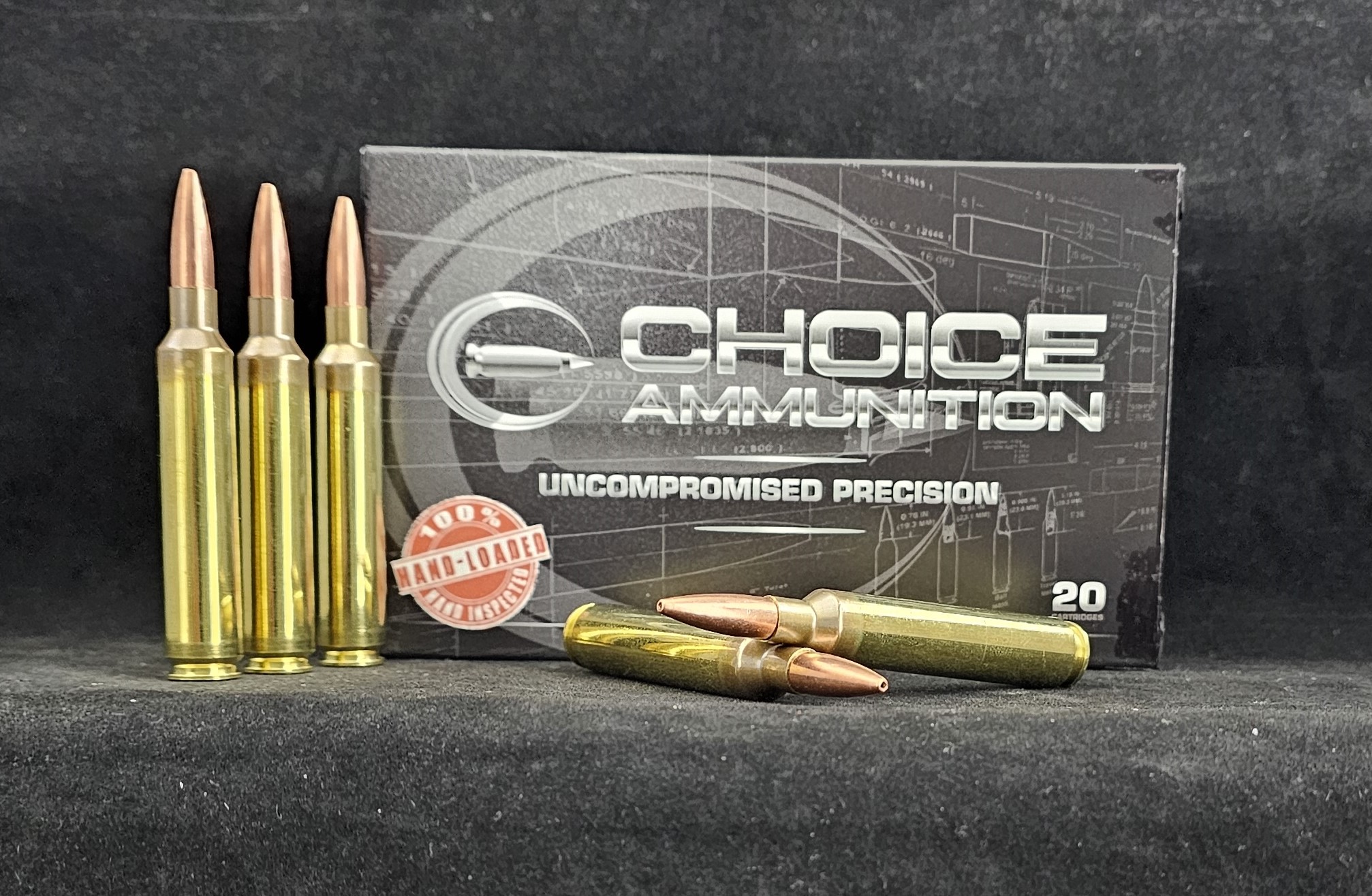 Choice Ammunition, and our 100% Hand-Loading techniques- produce a round of ammunition for the .280 Ackley Improved that is demanded in big game hunting. Accuracy, consistency and dependability are crucial at that final moments of your hunt. Choice Ammunition takes this responsibility seriously by meticulously weighing each powder charge with our proprietary formulas and temperature insensitive powders, seating the bullet at the exact length for optimal performance and test firing each and every lot of ammunition at an average of 500% over industry average. We have no high speed production machines- only passionate and dedicated load technicians pulling each and every handle, producing one round of ammunition at a time.