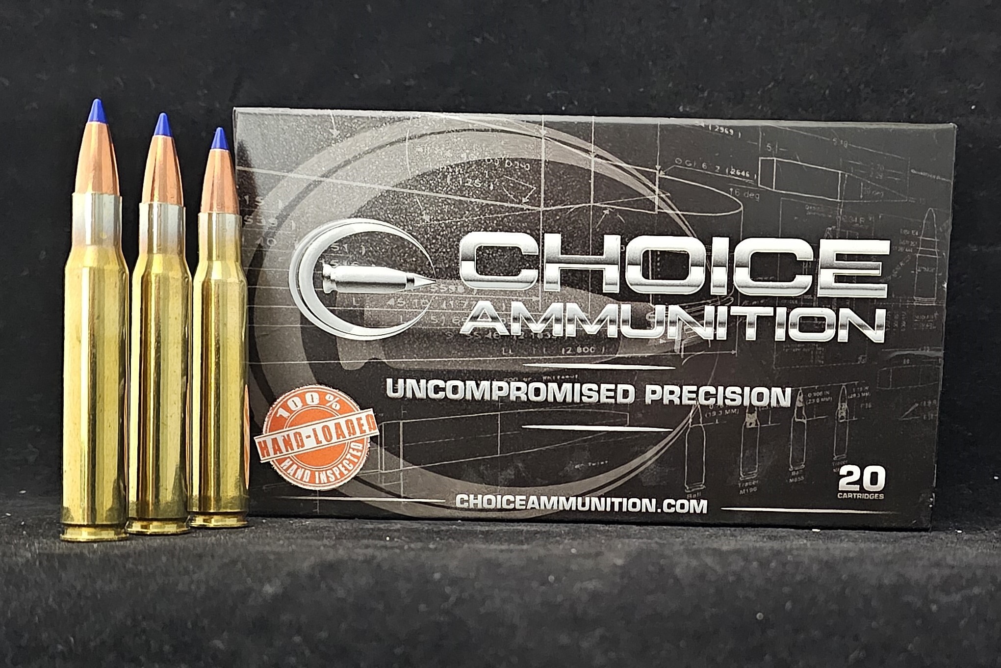 Choice Ammunition has taken our 100% hand-loading techniques and produce an extremely accurate, highly dependable round for the .30-06 in this load. Our loading tolerances are only matched by passionate hand-loaders in their own loading rooms. Consistent seating depths, powder charges and proprietary formulas of Choice Ammunition, make this 168 grain Barnes TTSX round the best you can buy on the commercial market today.