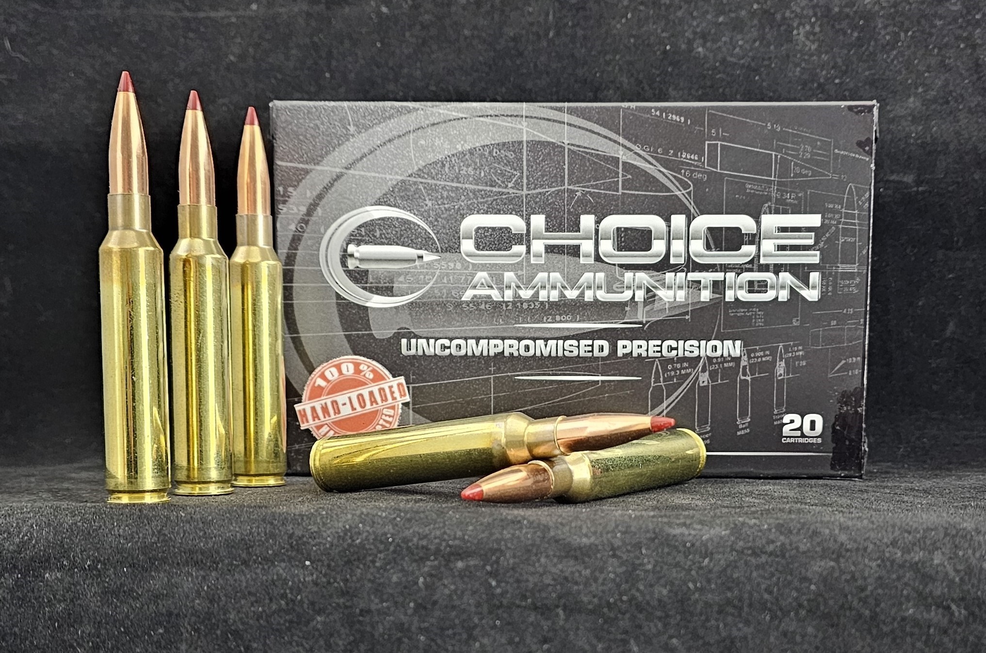 Choice Ammunition loads the .300 PRC with the same 100% hand-loading techniques as our other calibers. Our loading techniques and extremely tight tolerances are only matched by passionate hand-loaders in their own loading rooms. Our consistencies box to box and lot to lot, are created by continuous testing at the range- adjusting varied powder and brass lot formulas to match exact velocities and points of impact as the last time we loaded this caliber. Exact seating depths and our proprietary load formulas produce a round of ammunition you can count on for accuracy and dependability each and every time- and at that critical moment in the field when it all comes down to the shot!