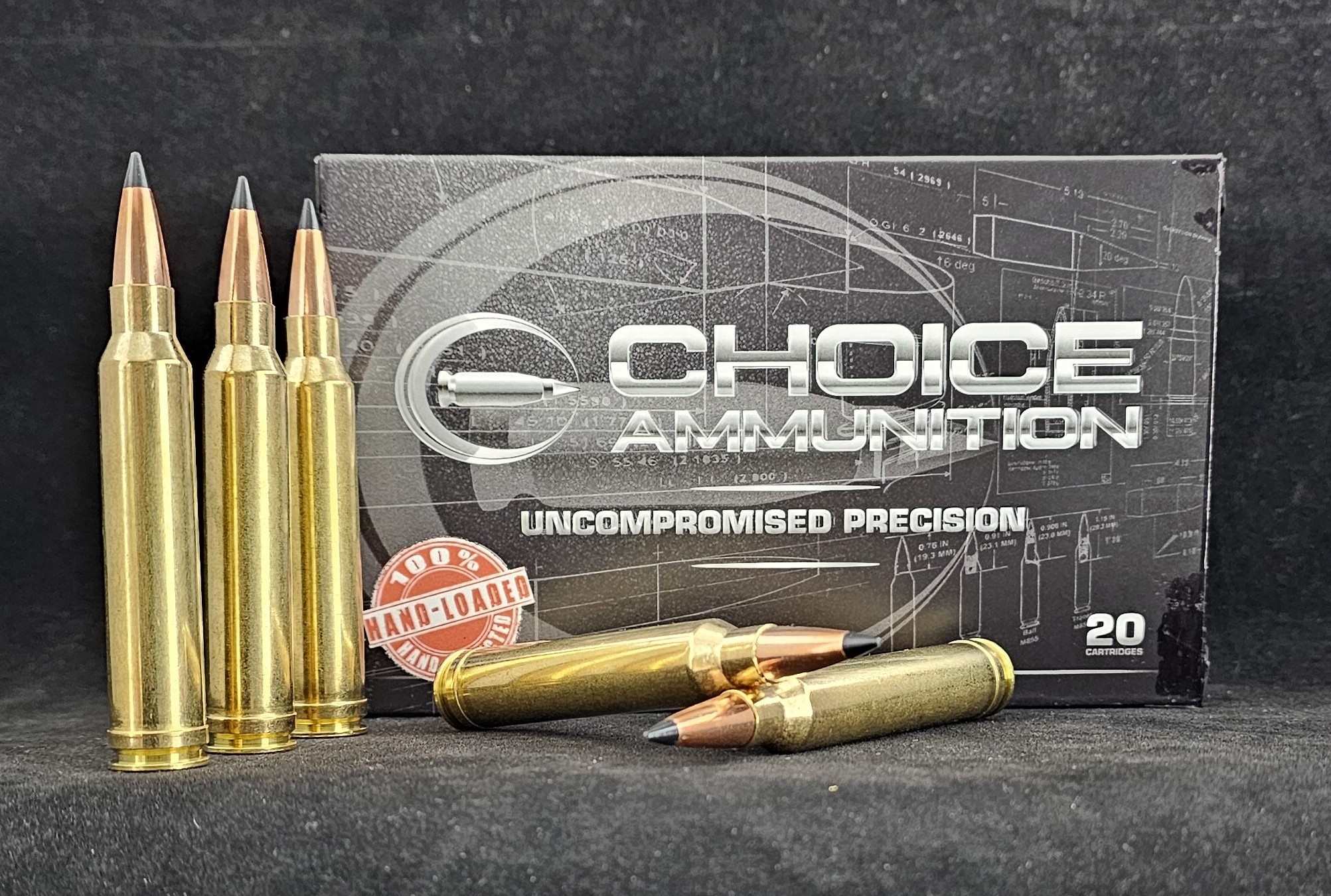 Choice Ammunition, and our 100% Hand-Loading techniques- produce a round of ammunition for the .300 Winchester Magnum that is demanded in big game hunting. Accuracy, consistency and dependability are crucial at that final moments of your hunt. Choice Ammunition takes this responsibility seriously by meticulously weighing each powder charge with our proprietary formulas and temperature insensitive powders, seating the bullet at the exact length for optimal performance and test firing each and every lot of ammunition at an average of 500% over industry average. We have no high speed production machines- only passionate and dedicated load technicians pulling each and every handle, producing one round of ammunition at a time.