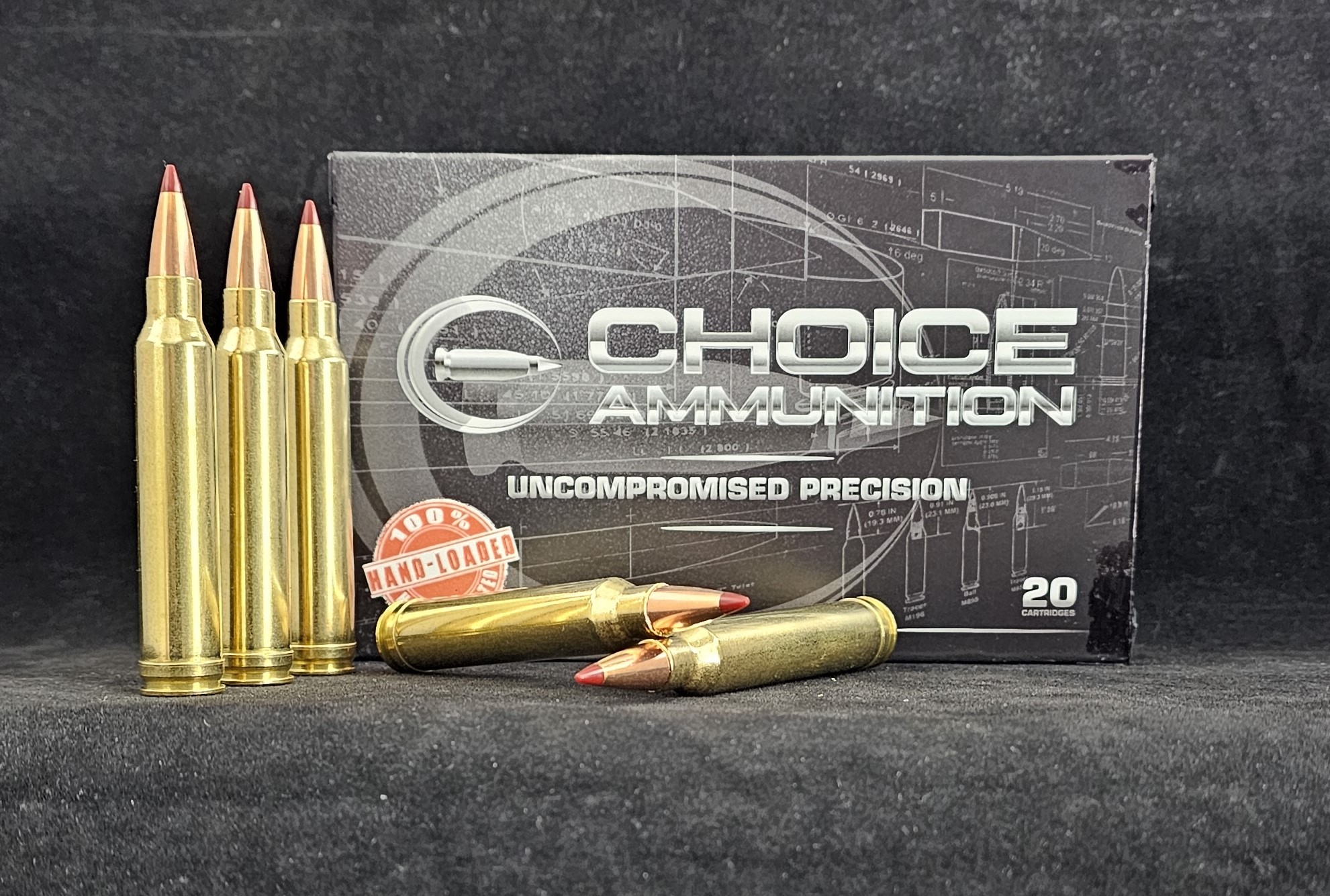 Choice Ammunition, and our 100% Hand-Loading techniques- produce a round of ammunition for the .300 Winchester Magnum that is demanded in big game hunting. Accuracy, consistency and dependability are crucial at that final moments of your hunt. Choice Ammunition takes this responsibility seriously by meticulously weighing each powder charge with our proprietary formulas and temperature insensitive powders, seating the bullet at the exact length for optimal performance and test firing each and every lot of ammunition at an average of 500% over industry average. We have no high speed production machines- only passionate and dedicated load technicians pulling each and every handle, producing one round of ammunition at a time.