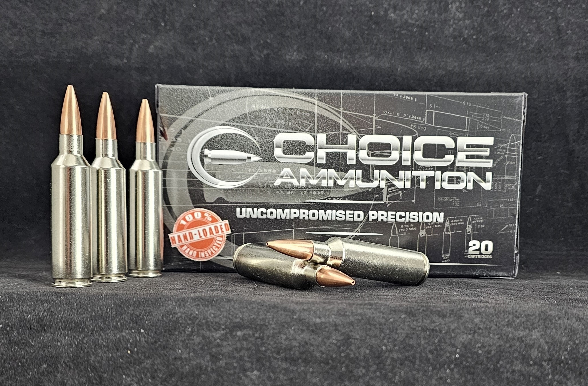 Choice Ammunition has taken our 100% hand-loading techniques and produce an extremely accurate, highly dependable round for the .300 Winchester in this load. Our loading tolerances are only matched by passionate hand-loaders in their own loading rooms. Consistent seating depths, powder charges and proprietary formulas of Choice Ammunition, make this 210 Berger VLD-Hunting round the best you can buy on the commercial market today.