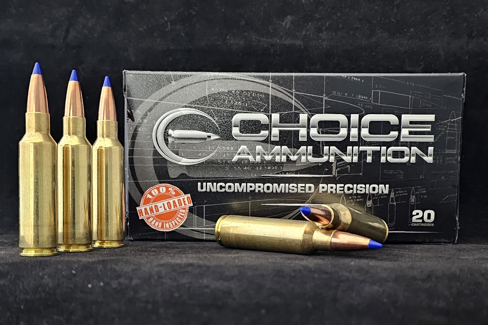 Choice Ammunition has taken our 100% hand-loading techniques and produce an extremely accurate, highly dependable round for the .300 Winchester Short Magnum in this load. Our loading tolerances are only matched by passionate hand-loaders in their own loading rooms. Consistent seating depths, powder charges and proprietary formulas of Choice Ammunition, make this 168 grain Berger VLD-Hunting round the best you can buy on the commercial market today.