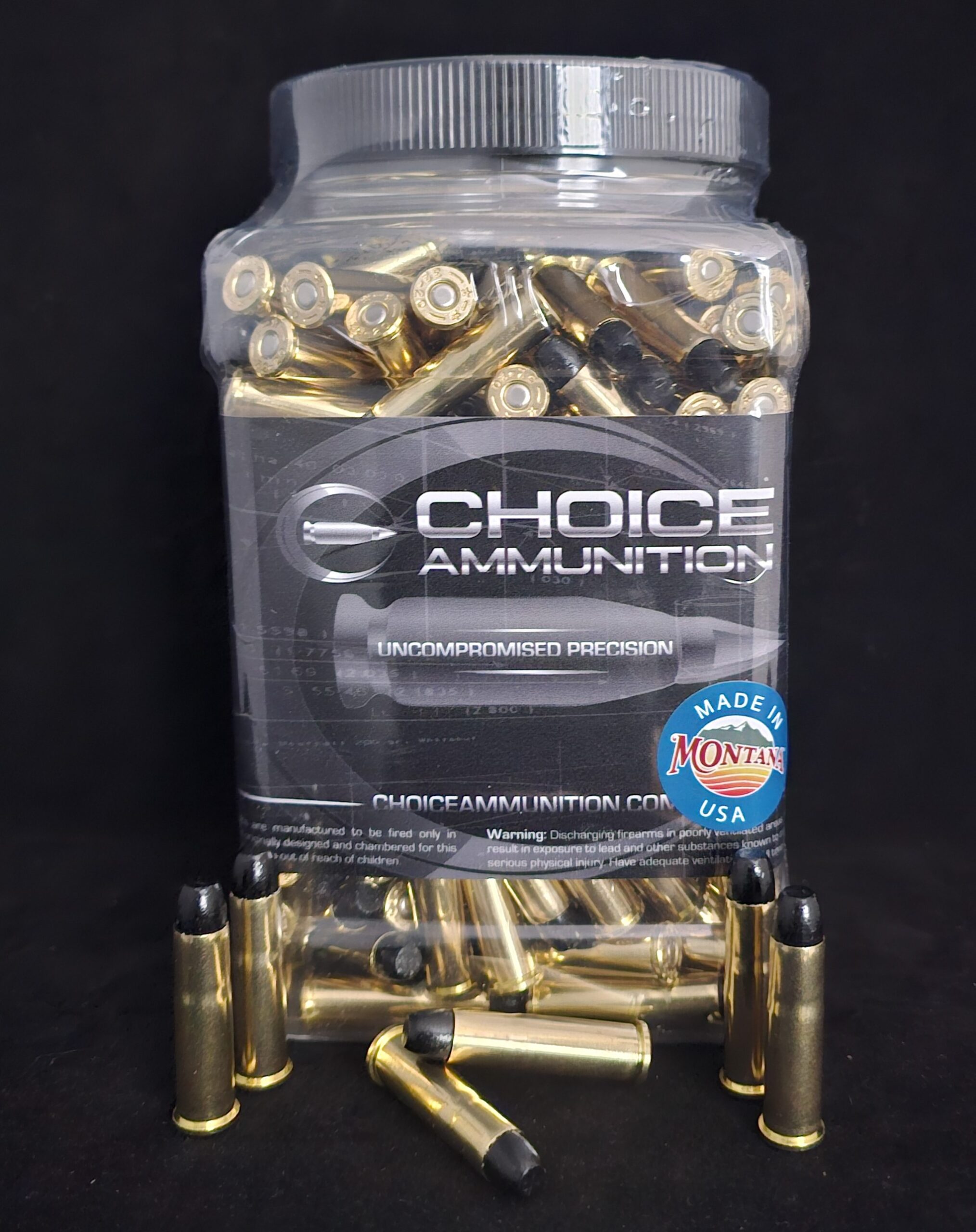 We feel our 100% hand-loading techniques and proprietary formulas produce the most reliable, consistent and accurate round on the commercial market today. Choice Ammunition emulates the same process passionate loaders do in their own loading rooms across the country. Hand-Loaded ammunition simply performs better than “factory” ammunition for a number of reasons. Why compromise with this hand gun Range/Game Load when a premium product such as this is available competitively priced? Please try Choice Ammunition! This 115 grain (16 BHN) hard cast lead bullet is designed for great time at the range and is an accurate, fun round to shoot, It is also a very good hunting round with good penetration and terminal performance for deer and smaller game animals.