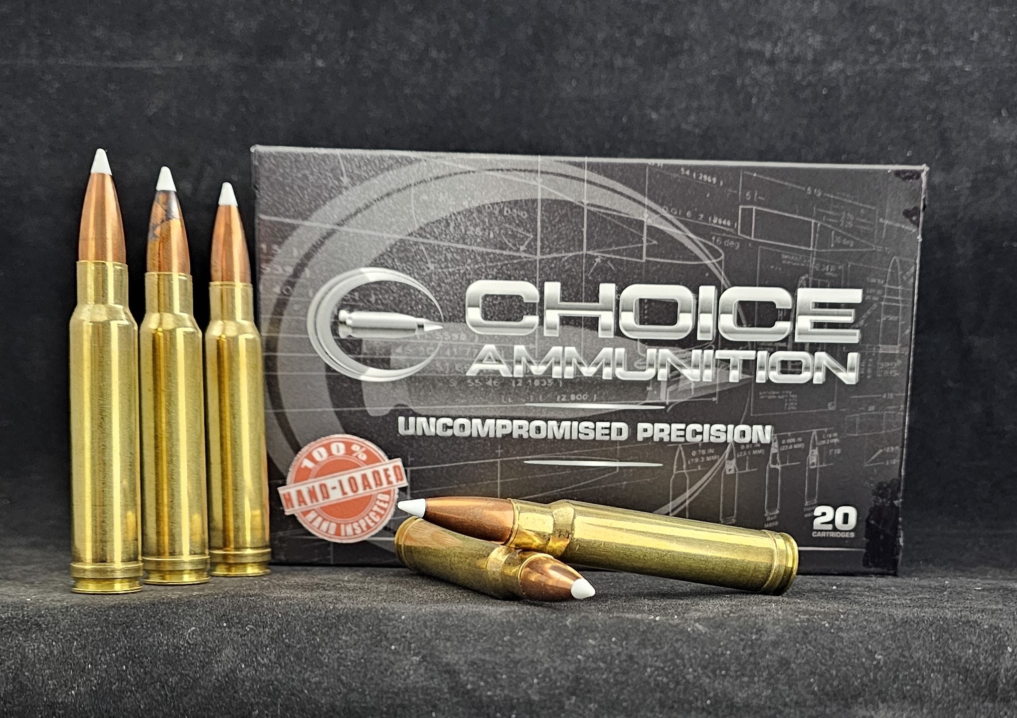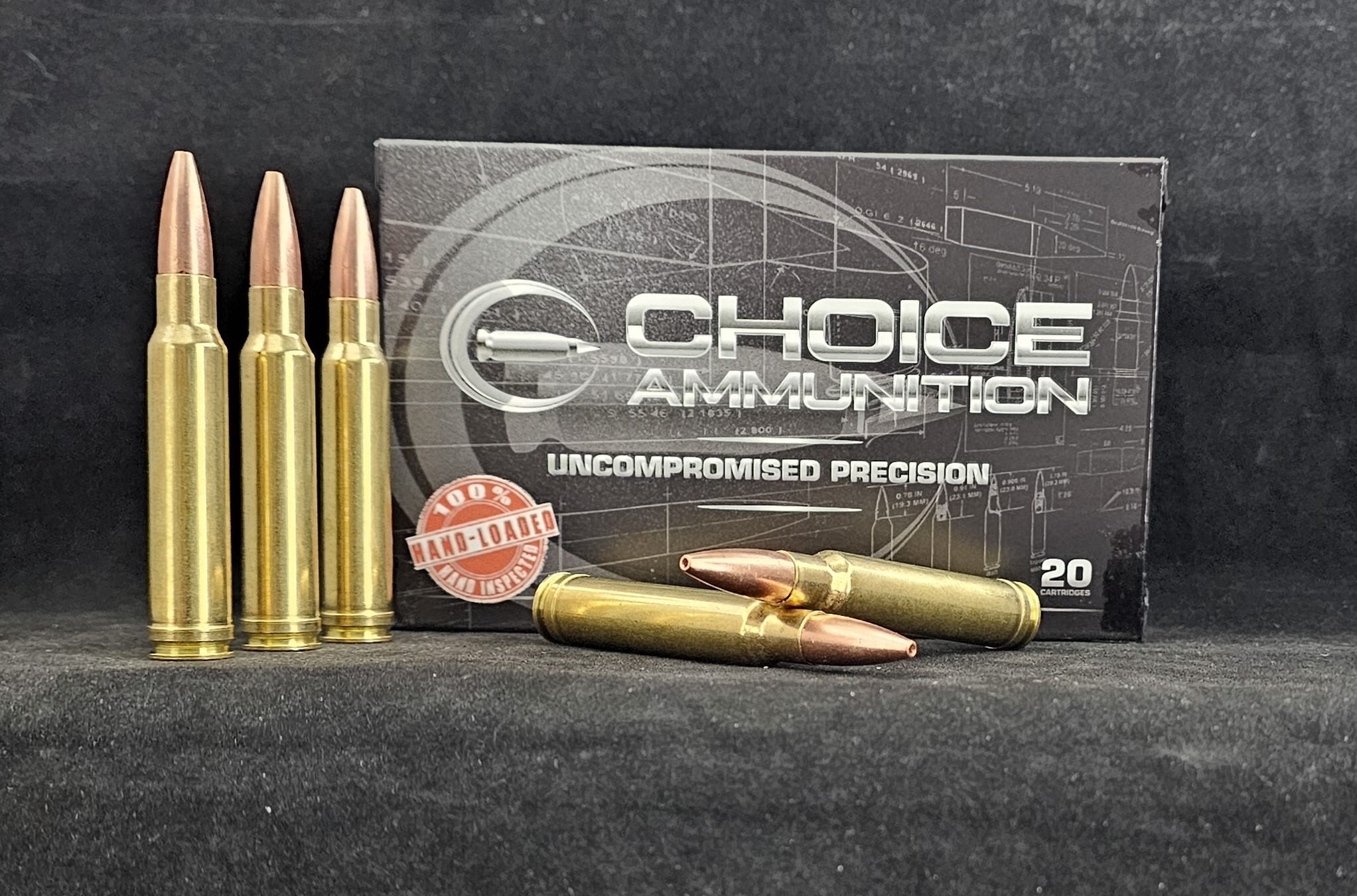 Choice Ammunition has taken our 100% hand-loading techniques and produce an extremely accurate, highly dependable round for the 338 Winchester Magnum in this load. Our loading tolerances are only matched by passionate hand-loaders in their own loading rooms. Consistent seating depths, powder charges and proprietary formulas of Choice Ammunition, make this 250 Grain Elite Hunter round the best you can buy on the commercial market today.