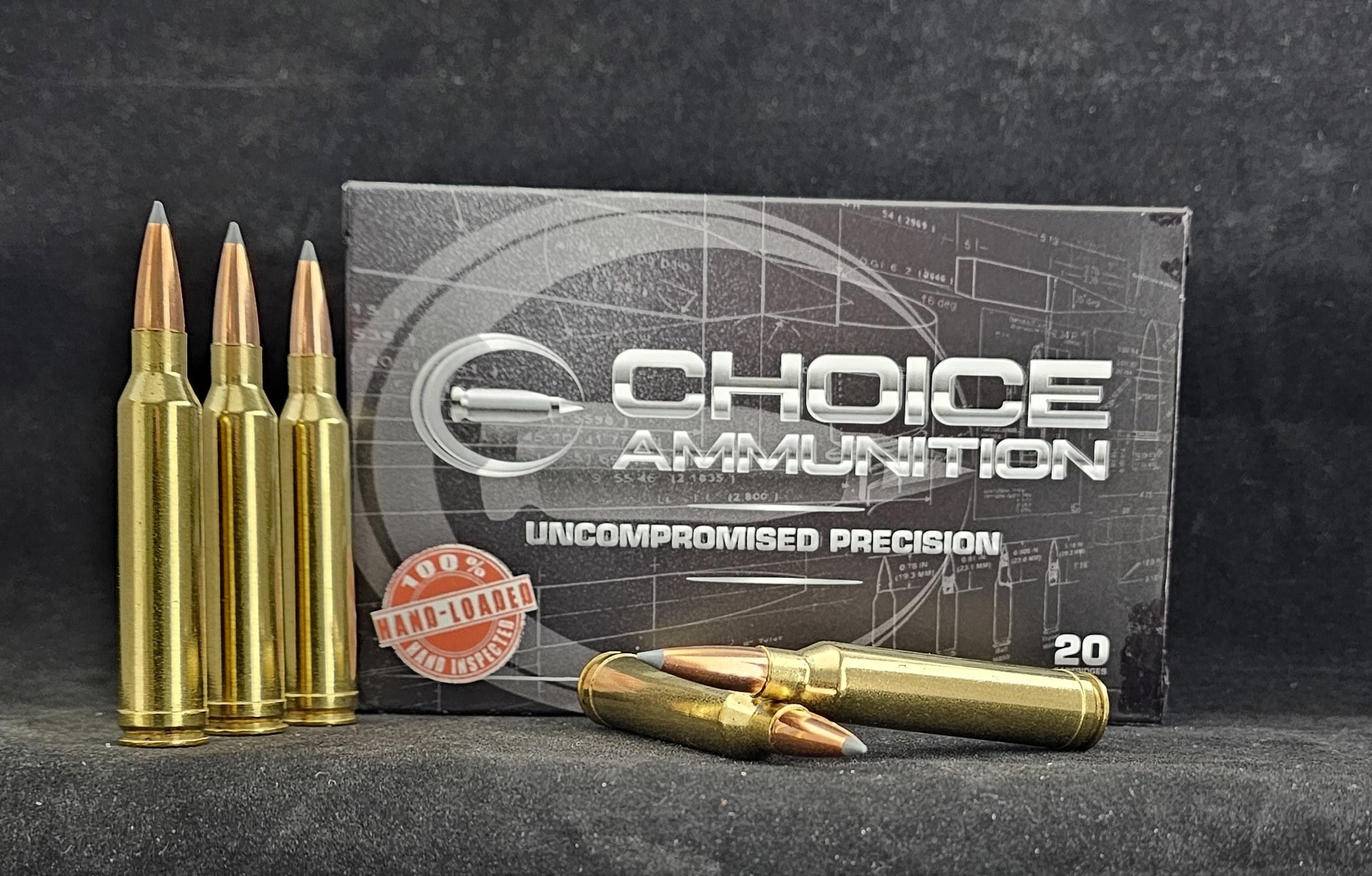 Choice Ammunition has taken our 100% hand-loading techniques and produce an extremely accurate, highly dependable round for the .340 Weatherby in this load. Our loading tolerances are only matched by passionate hand-loaders in their own loading rooms. Consistent seating depths, powder charges and proprietary formulas of Choice Ammunition, make this 225 grain Nosler AccuBond round the best you can buy on the commercial market today.