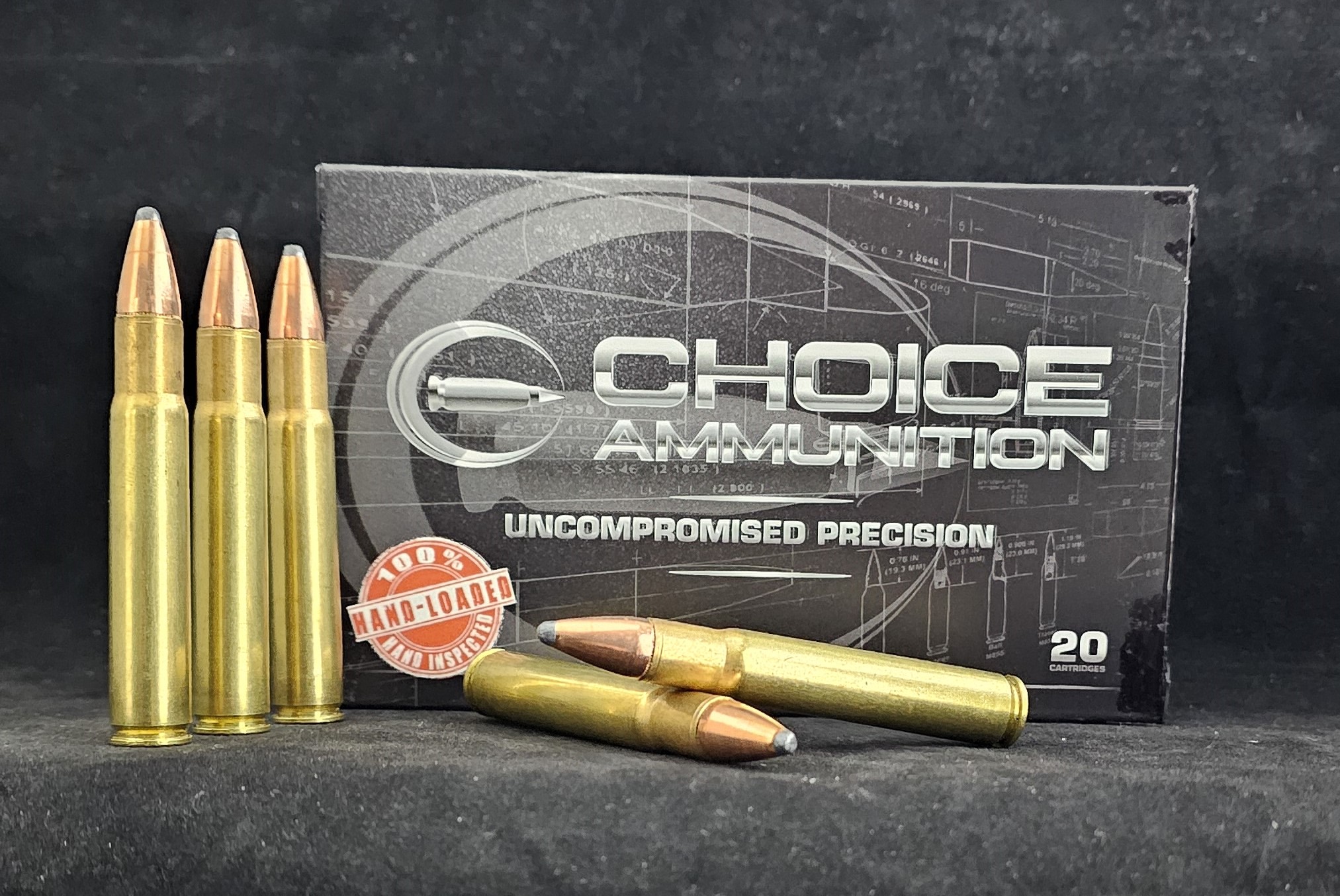 Choice Ammunition has taken our 100% hand-loading techniques and produce an extremely accurate, highly dependable round for the .35 Whelen in this load. Our loading tolerances are only matched by passionate hand-loaders in their own loading rooms. Consistent seating depths, powder charges and proprietary formulas of Choice Ammunition, make this 225 grain Nosler AccuBond round the best you can buy on the commercial market today.