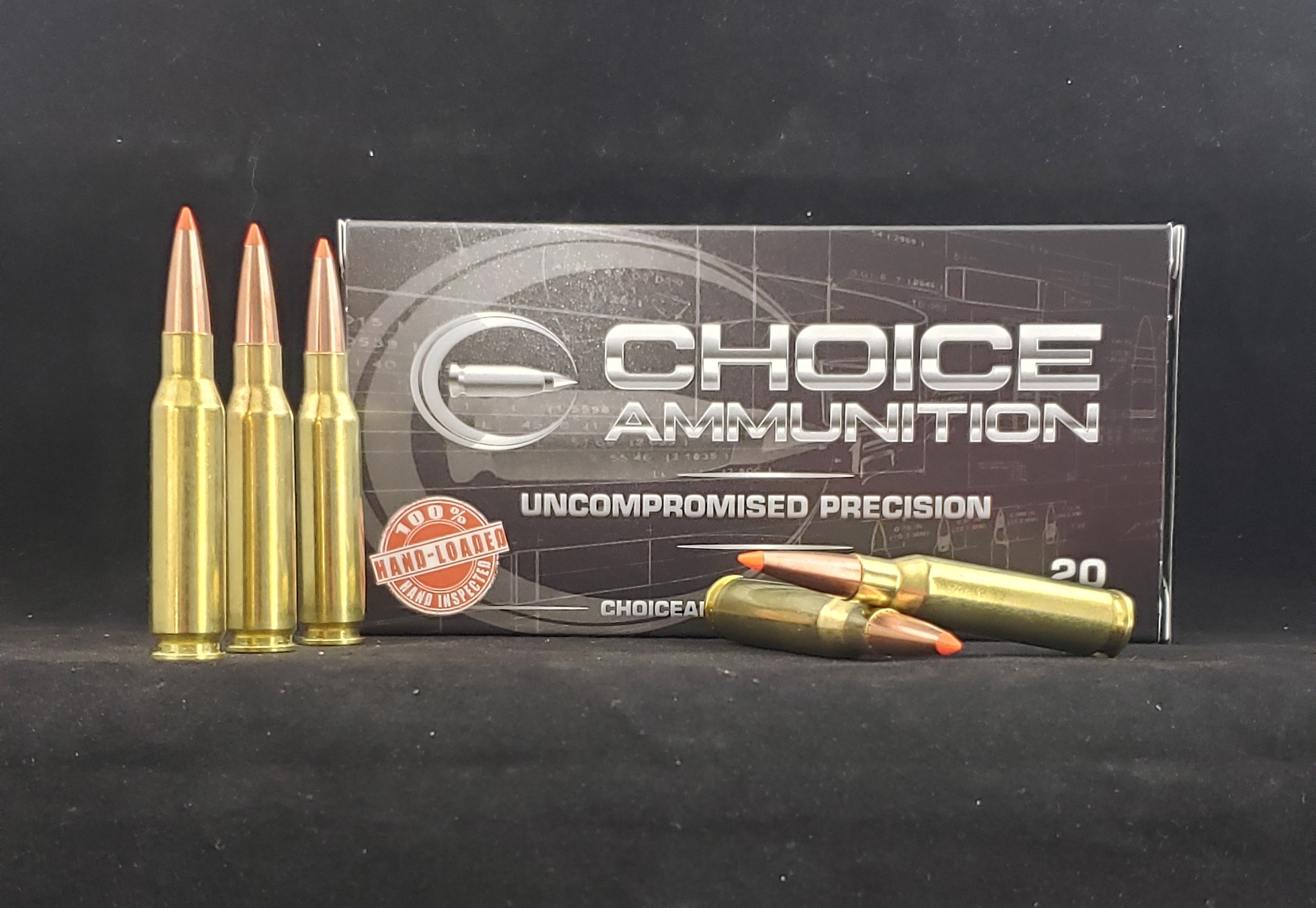Choice Ammunition, and our 100% Hand-Loading techniques- produce a round of ammunition for the .375 Ruger that is demanded in dangerous game hunting. Accuracy, consistency and dependability are crucial at that final moments of such an encounter. Choice Ammunition takes this responsibility seriously by meticulously weighing each powder charge with our proprietary formulas and temperature insensitive powders, seating the bullet at the exact length for optimal performance and test firing each and every lot of ammunition at an average of 500% over industry average. We have no high speed production machines- only passionate and dedicated load technicians pulling each and every handle, producing one round of ammunition at a time. This 260 grain Nosler Accubond round will insure your success for a variety of big game species!