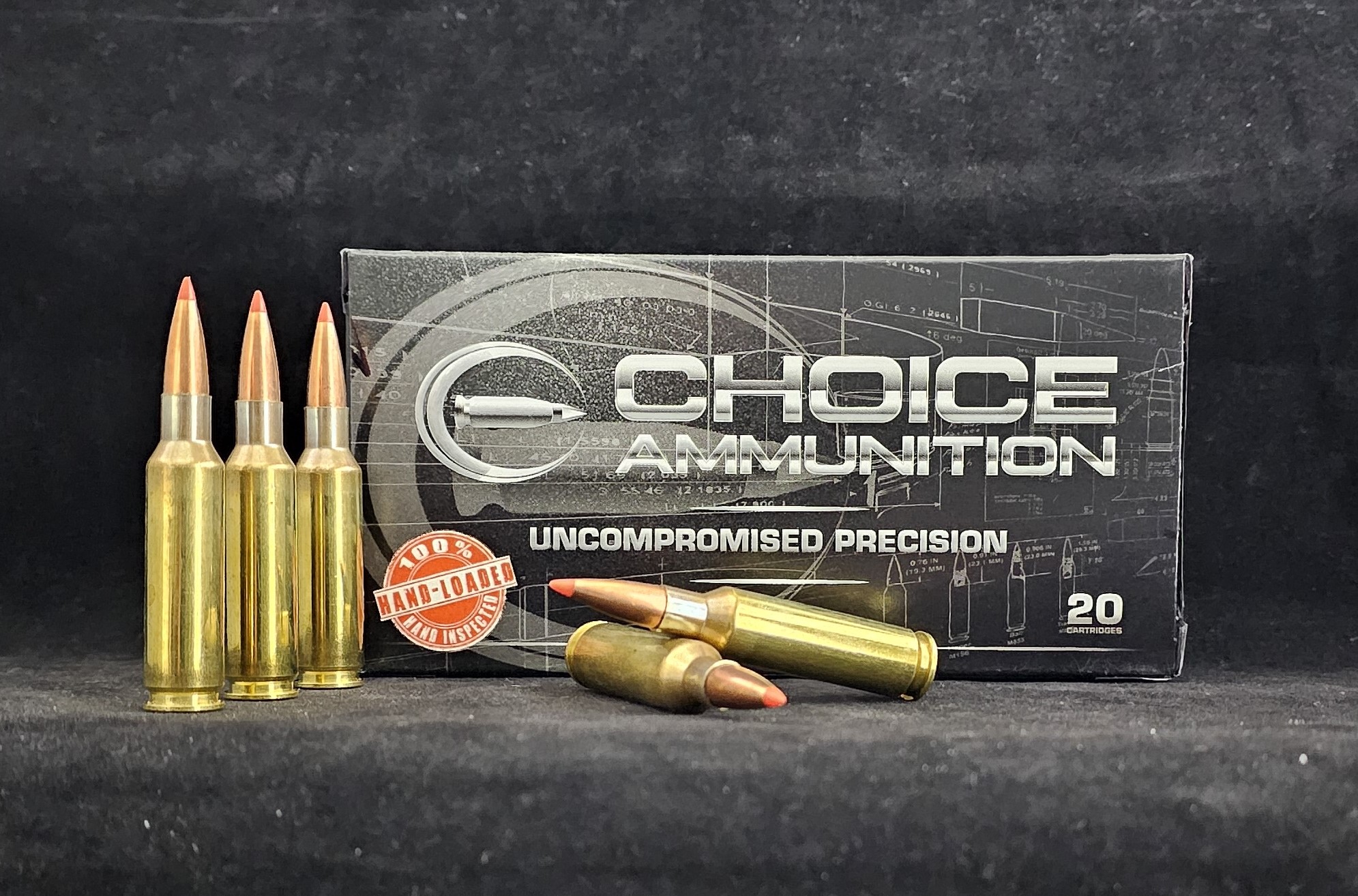 Choice Ammunition has taken our 100% hand-loading techniques and produce an extremely accurate, highly dependable round for the 6.5 Creedmoor in this load. Our loading tolerances are only matched by passionate hand-loaders in their own loading rooms. Consistent seating depths, powder charges and proprietary formulas of Choice Ammunition, make this 140 Grain Hornady ELD-M round the best you can buy on the commercial market today.