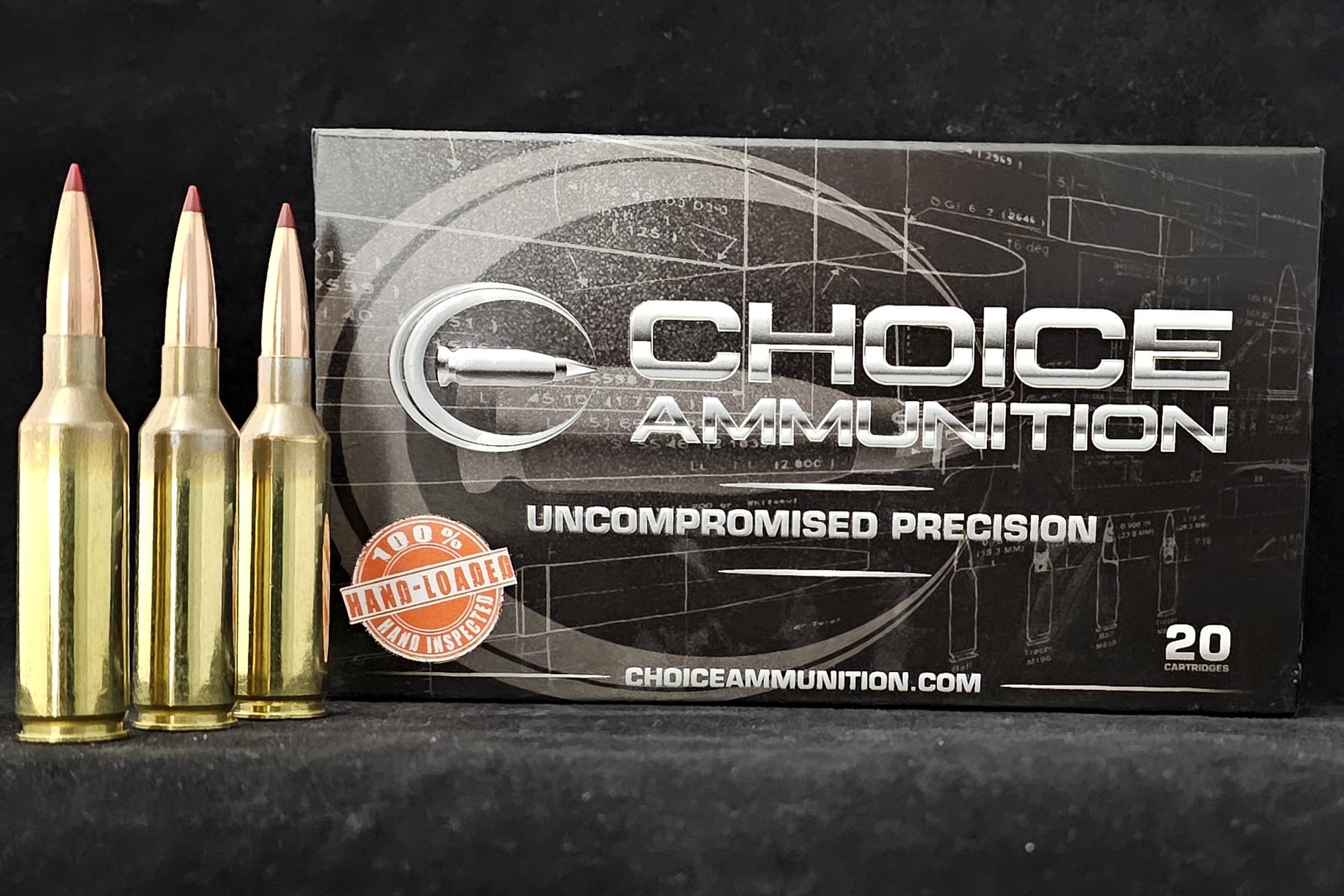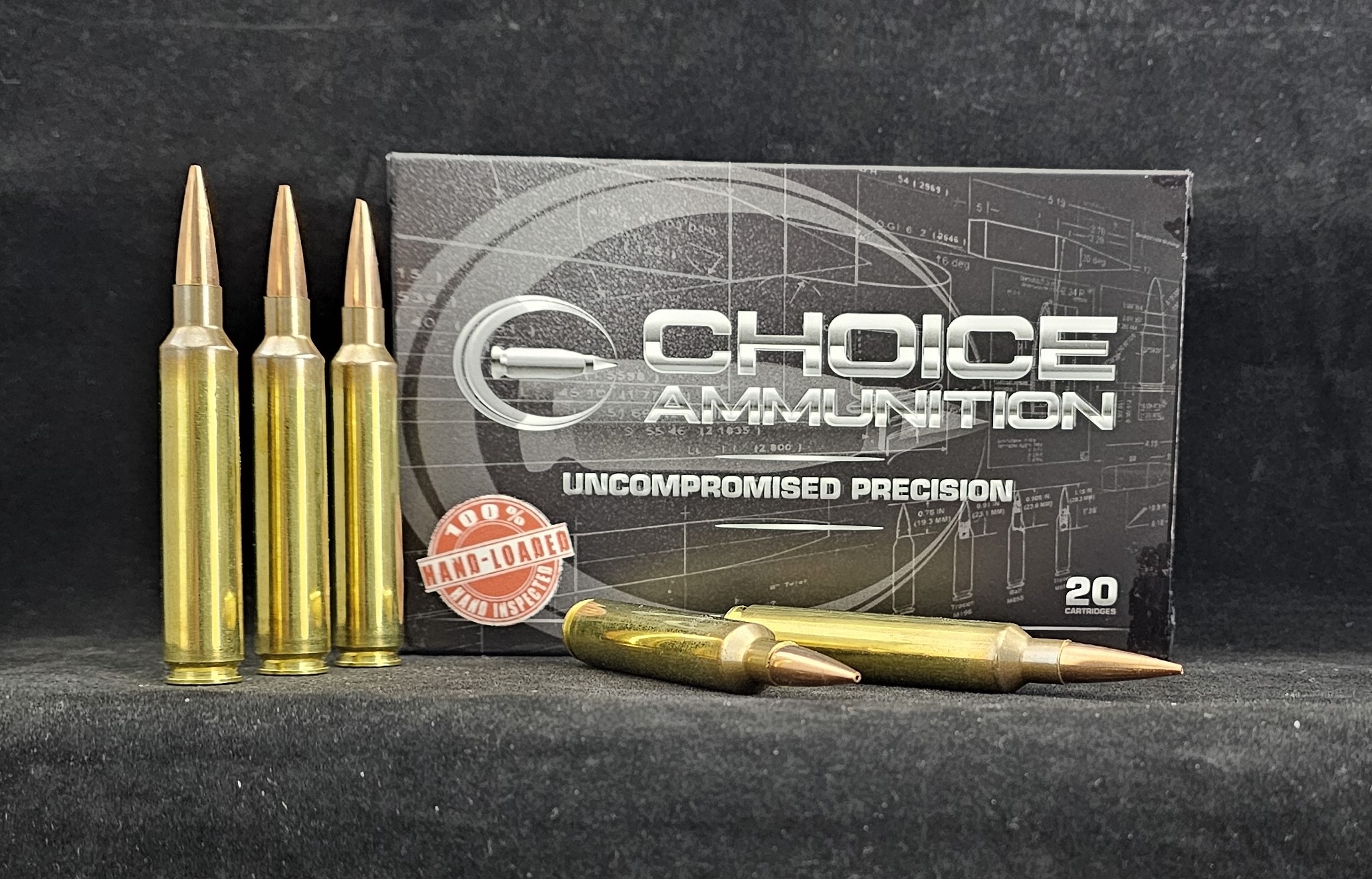 Choice Ammunition has taken our 100% hand-loading techniques and produce an extremely accurate, highly dependable round for the 6.5 PRC in this load. Our loading tolerances are only matched by passionate hand-loaders in their own loading rooms. Consistent seating depths, powder charges and proprietary formulas of Choice Ammunition, make this 156 grain Berger EOL Elite Hunter round the best you can buy on the commercial market today.