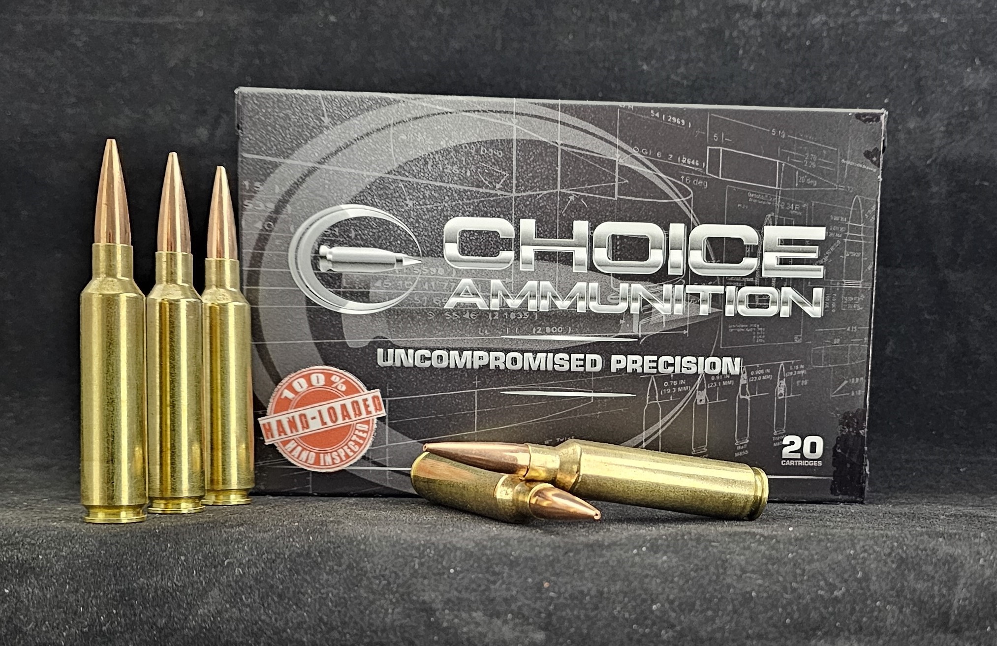 Choice Ammunition has taken our 100% hand-loading techniques and produce an extremely accurate, highly dependable round for the 6.5mm-284 Norma in this load. Our loading tolerances are only matched by passionate hand-loaders in their own loading rooms. Consistent seating depths, powder charges and proprietary formulas of Choice Ammunition, make this 130 Grain Berger VLD-H round the best you can buy for this caliber on the commercial market today.